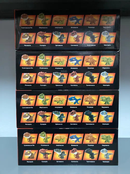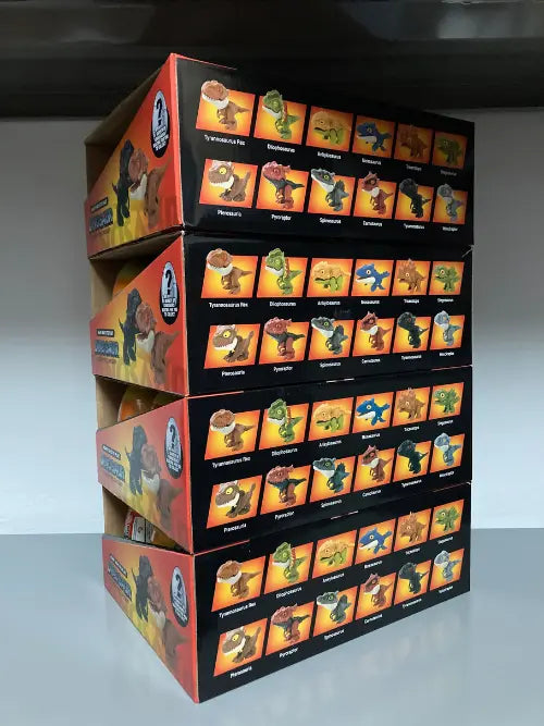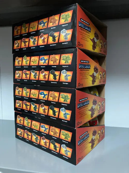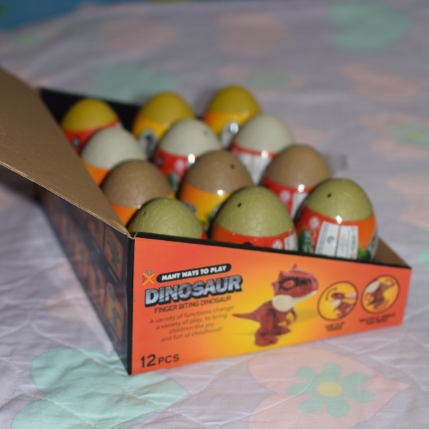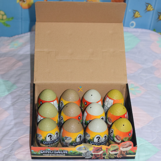 Cada uno de los 12 huevos contiene un dinosaurio mordelón. Coleccionar los T-Rex, Triceratops, Raptor y otros, es parte de la diversión. ¡Es como tener 12 juguetes en uno!